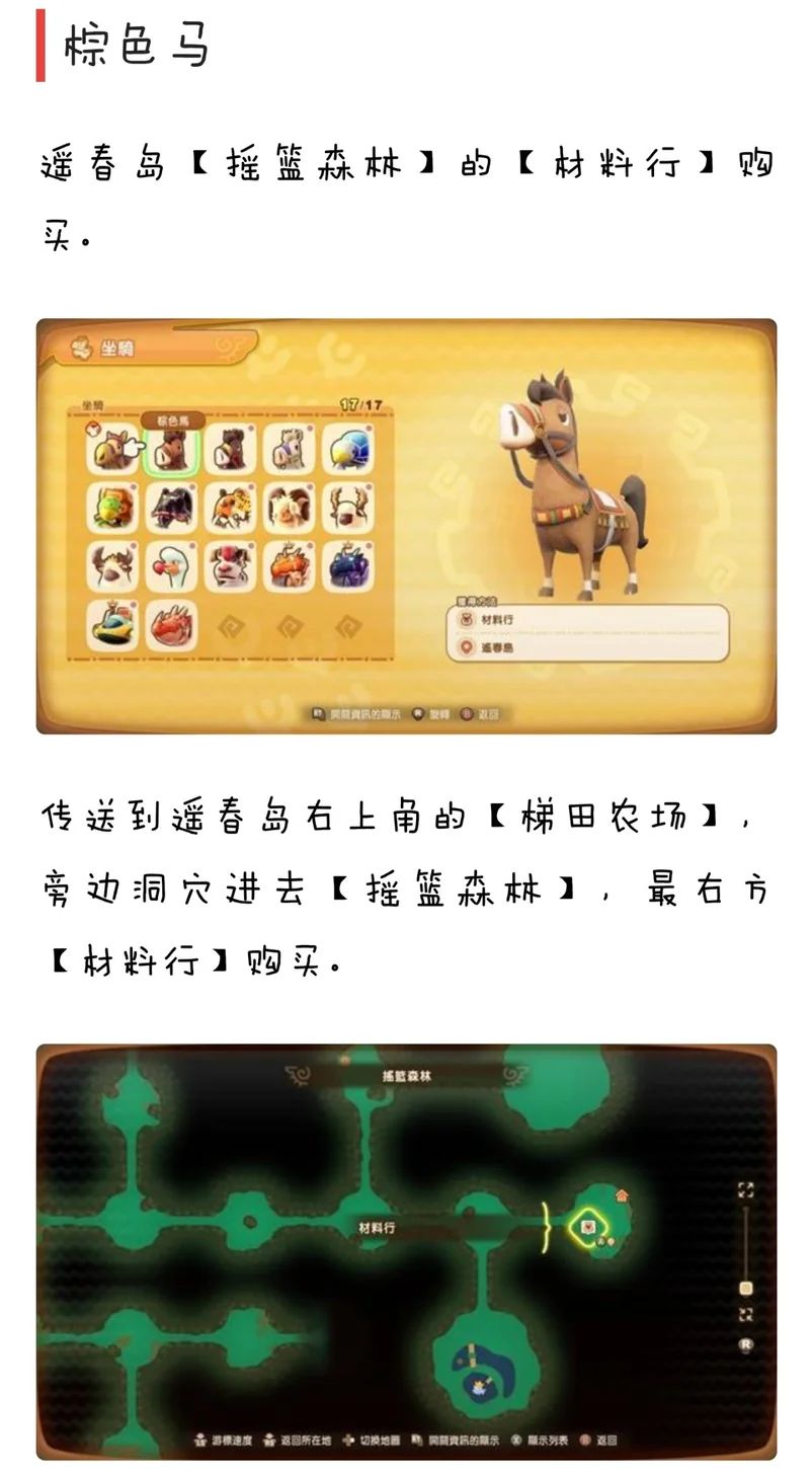 2、棕色马:遥春岛-摇篮森林的材料行购买