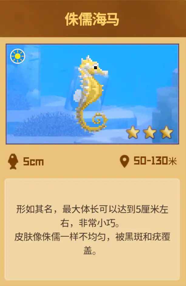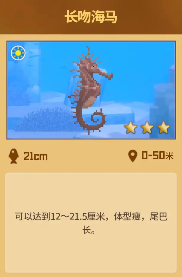在深海,出现在有水母的地方,背景比较暗,海马也比较暗,需要仔细寻找才能找到。出现捕抓键立马捕抓管它是什么。