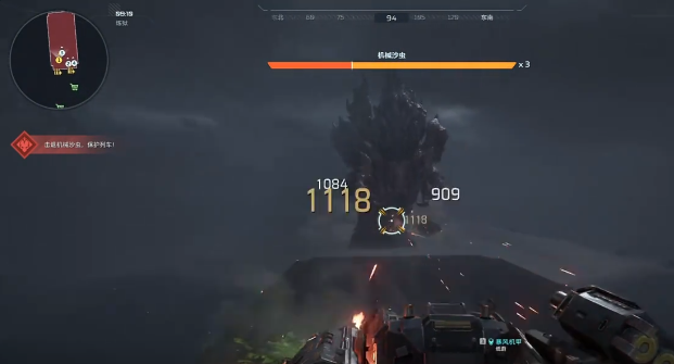 第二阶段Boss“机械沙虫”强调团队走位协同。其技能体系包含四项:一是地板啃咬,表现为地面裂痕蔓延,玩家只需后撤两步即可完全规避;二是小虫召唤,生成多只高速移动的机械幼体,威胁较低,可边移动边清理;三是中场翻越,Boss以高速横向贯穿战场中心,所有成员须提前撤离中线区域;四是绿色激光扫射,属于高危技能,必须在Boss腹部弱点激活瞬间进行精准射击,方可中断激光释放流程。