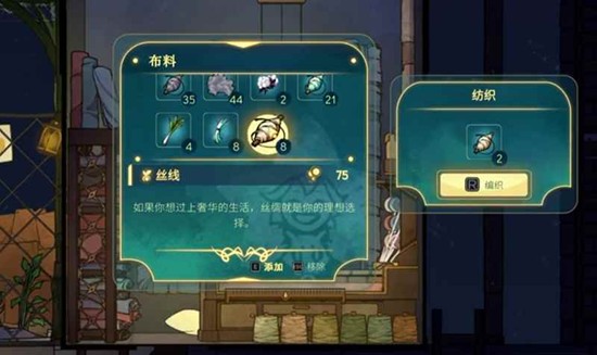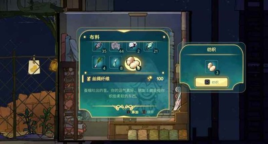 当收集到足够的丝绸纤维后,玩家就可以启动织布厂的加工流程了。在心灵渡船的游戏机制中,织布厂会将丝绸纤维先加工成丝线,再进一步织造成最终的丝绸布。至此,从寻找种子到收获成品的完整链条便完成了。