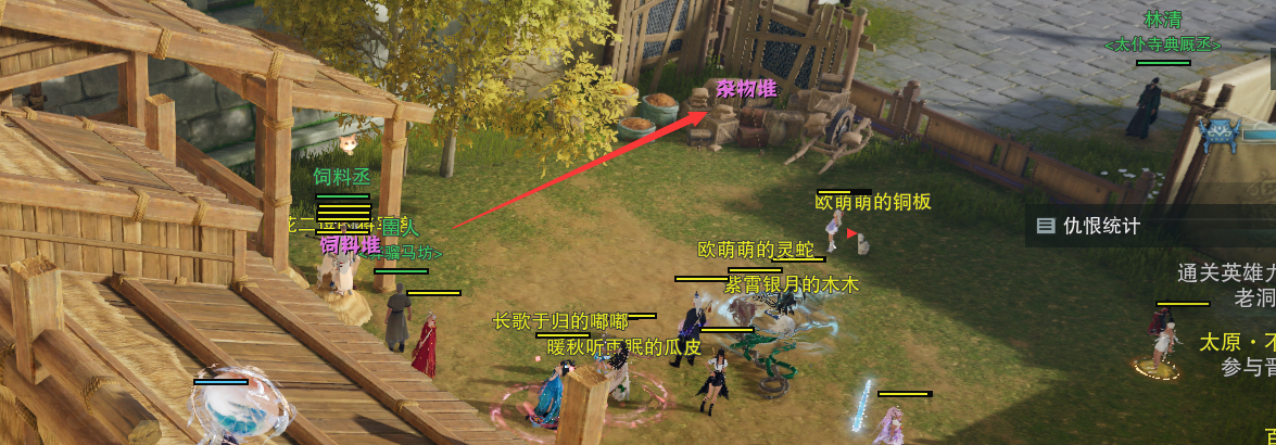6、对话【张大】,然后对话【林清】,然后在地图左下角的骝和马字中间的位置触发剧情,剧情结束后对话【大猫】