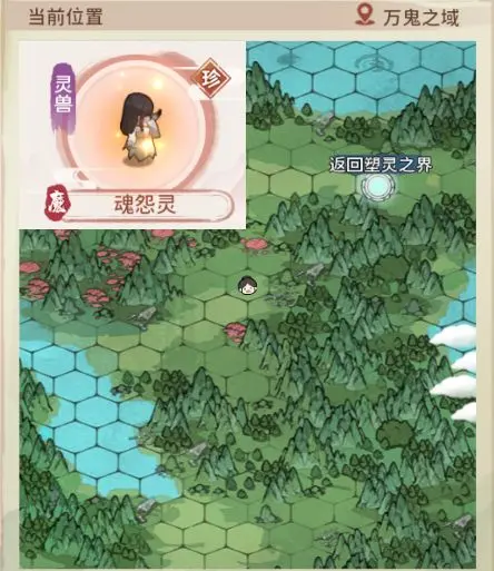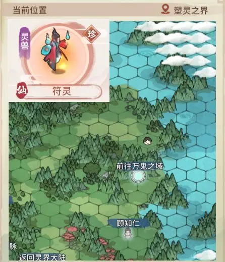 5、符灵:塑灵之界——地图“最右侧”,“前往万鬼之域”上方。无普通灵兽,与“重明”伴生