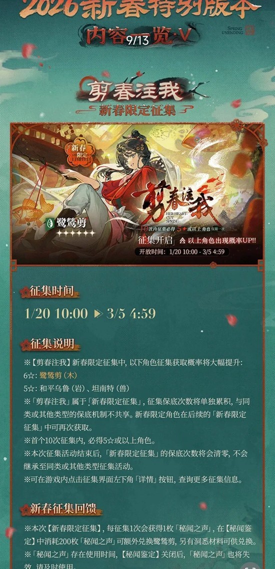 以上就是重返未来:1999不老春3.4版本,新春卡池抽取小建议的全部内容了,更多游戏资讯,攻略内容敬请关注,您的支持是我们努力的动力!