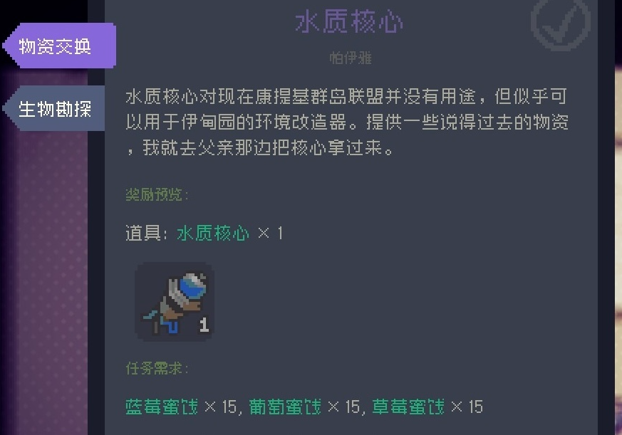 3、水质核心:这是环境改造器的一个卡槽所需,也是要尽量早点完成