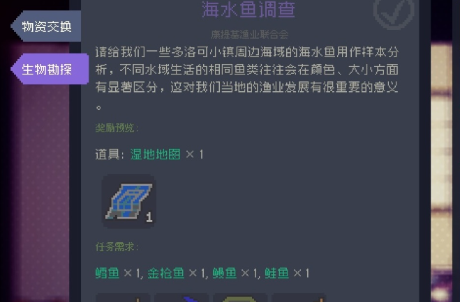 2、第二个任务的鱼类,需要环境改造器「三级改造」之后才会出现。 需要注意的是,每种鱼类出现的时间不同,也是需要提前准备的