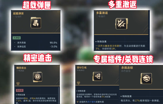 第二款是副本专属武器——死亡猎手。其核心机制为高单发伤害与精准打击适配性,适用于需要一击制敌或远程点射的战术场景。插件推荐采用“多重激返”(增强子弹穿透能力,提升多目标覆盖效率)、“精密追击”(优化远距离瞄准稳定性与命中率)以及“杀戮连锁”。该组合既保障了弹药利用率,又强化了中远距离作战容错率,使每一次射击都具备明确战术价值。
