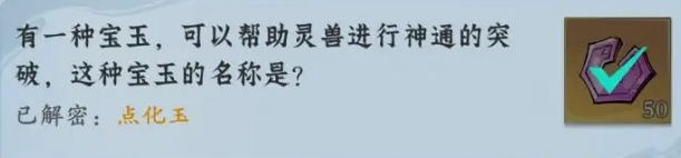 1、有一种宝玉,可以帮助灵兽进行神通的突破,这种宝玉的名称是?点化玉