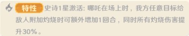效果:英雄9星解锁50%破甲,殿堂1星获得50%对灼烧目标增伤,史诗1星解锁全队施加灼烧状态持续回合数+1。