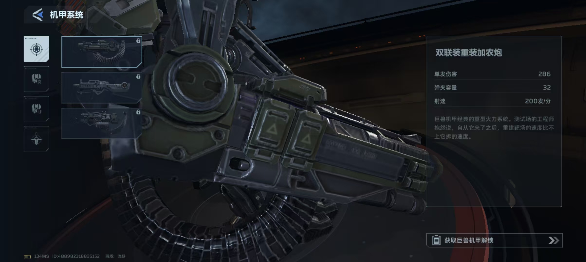 巨兽机甲需完成累计7日签到方可激活,解锁后即获得基础配件库。在PVE副本实战中,主炮推荐选用【双联装重装加农炮】——该配置可同步提升单发伤害、弹匣容量与射速三项关键参数,适用于中远距离持续压制。