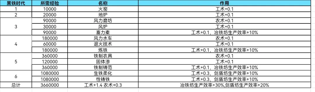 大周列国志技术系统黑铁时代经验加成大全