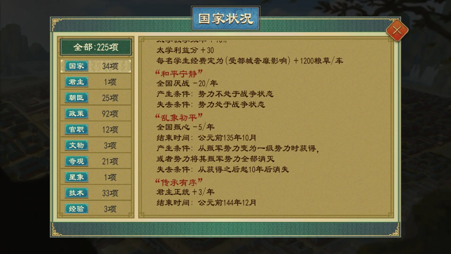 在拥有一个士林领袖后,每年12月,太学便会根据国家势力的各项分数得出清议结论