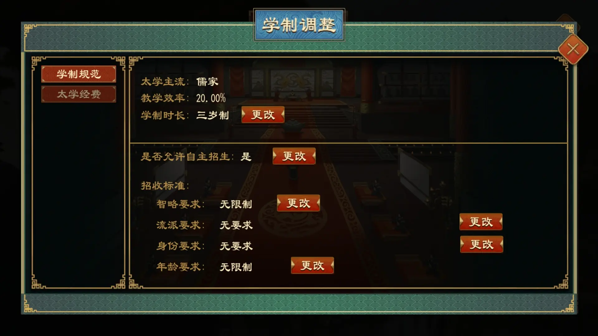大周列国志太学设置推荐,在开启太学系统后,都城学府中的学苑便会变成太学。在太学界面中,可以进行多种调整。