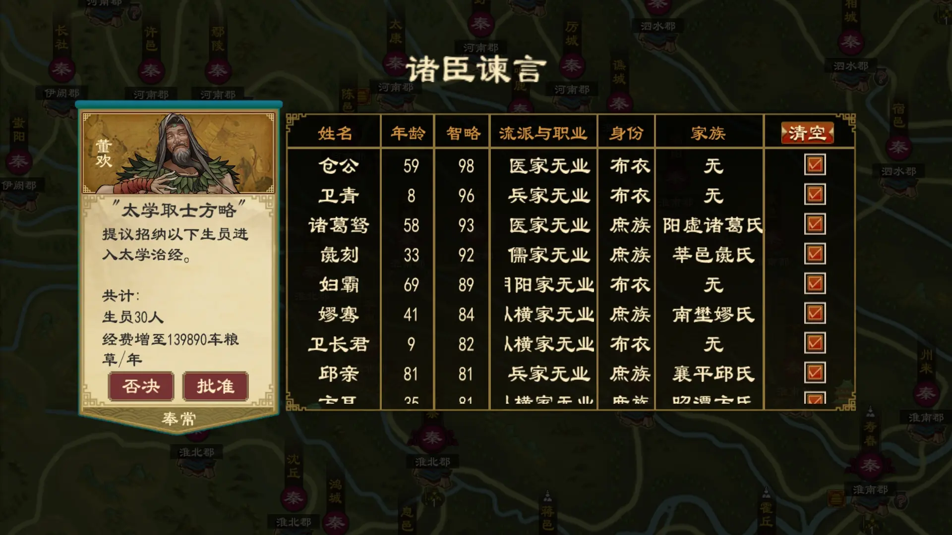 在弹出的谏言界面可以同意或拒绝这些学生进入太学