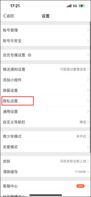 进入到设置界面,再点击“隐私设置”选项;