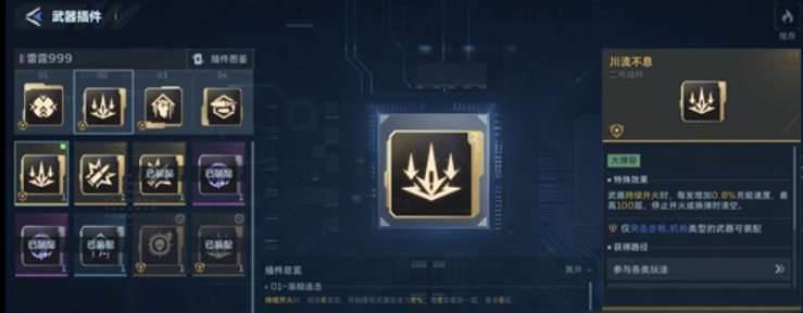 这个天赋可以大幅提升,我们开火期间,充能效率,且999不需要换弹可以吃满,该配件的属性。
