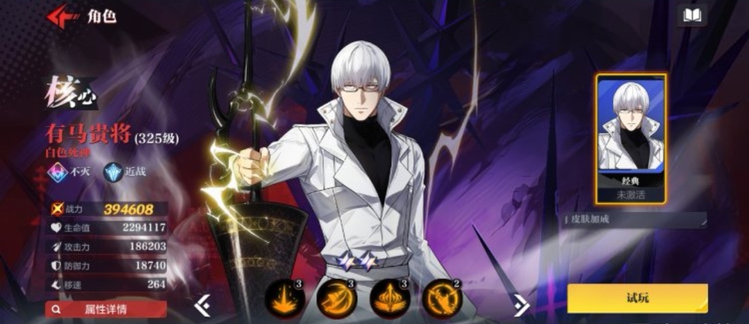 第三位:有马贵将,不灭阵营高容错近战核心。技能【终末裁决】瞬移至敌方身后并造成范围赫能伤害,同时有35%概率将自身全部负面状态转移至随机一名敌方单位。【雷霆审判】召唤IXA落雷,对目标及其周围单位造成2倍赫能伤害,每命中一名敌人回复自身最大生命值3%的生命。被动【不败传说】同步提升攻击力与生命值,契合其攻守兼备的战术定位。
