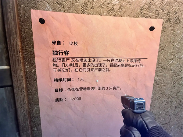 任务目标:杀死在营地墙边行走的3只丧尸