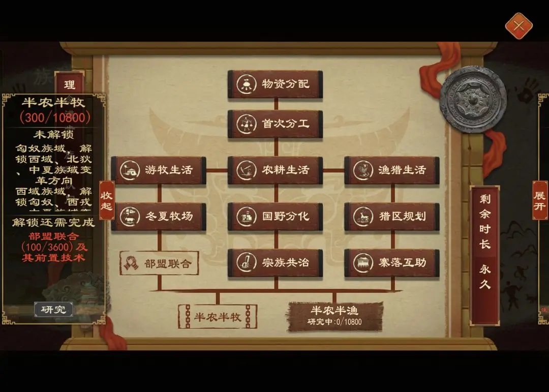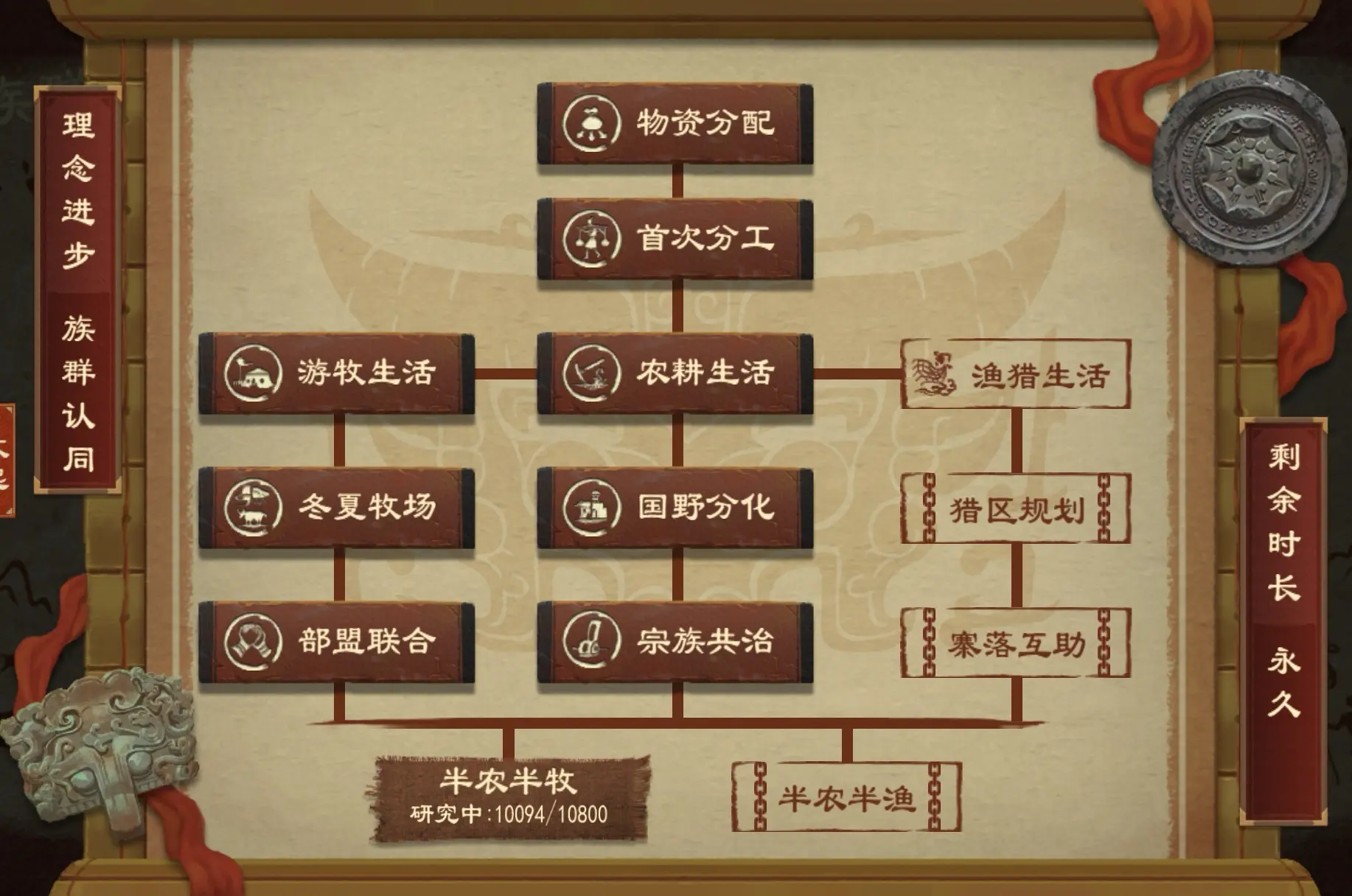 木石时代的技术研究完成后,从先民阶段跳转方国阶段,并进入青铜时代,玩家可以研究青铜时代的技术政策。