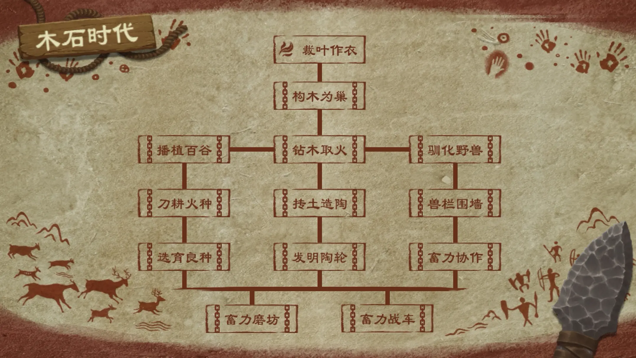 注:非先民阶段完成所有木石技术后将直接进入青铜时代,直接从先民阶段跳转到方国阶段,不进入族群认同时代。