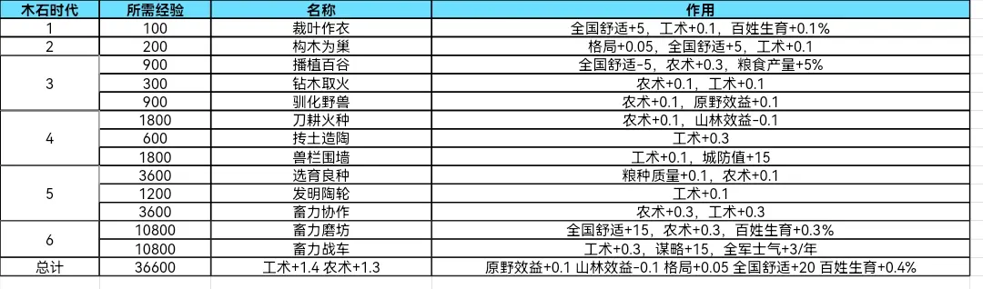 大周列国志技术系统木石时代经验加成大全