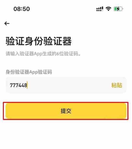 5. 返回币安APP输入验证码完成最后确认,此后敏感操作均需验证。