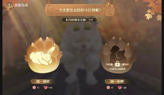 亲密互动——好感五级之前【摸一摸吧】,五级之后【抱一抱吧】