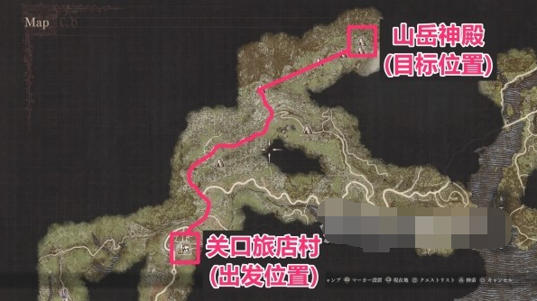 第一阶段斯芬克斯会在地图左上角的山岳神殿出现,建议从关口旅店村出发(从维纶沃斯和巴克巴达尔乘坐牛车前往)按照下图路线前往。