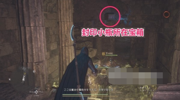 进入神殿前面的洞穴,从入口正上方的真宝箱中获得「封印小瓶」,离开洞穴并把「封印小瓶」交付给斯芬克斯。如果交付从其他宝箱中获得的物品则解谜失败。