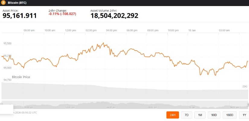 截至发稿,比特币报95,161.91美元,24小时微跌0.11%。来源:Brave New Coin比特币价格