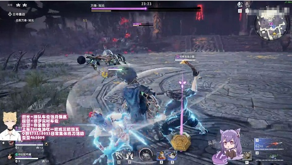 1、首先我们开始阶段快速拉扯破盾,等第一次倒地重复一段蓄力即可确保最高输出。
