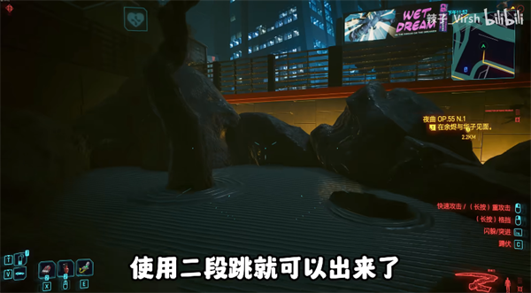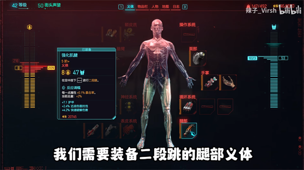 2、首先我们需要装备二段跳的腿部义体,这个义体非常重要;
