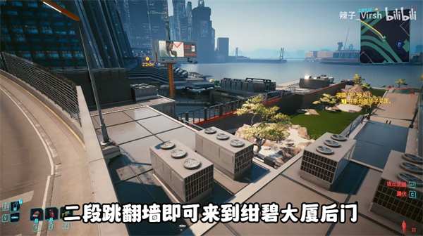 4、开车来到高架桥的这个位置,爬上车,二段跳番强即可来到绀碧大厦后门;
