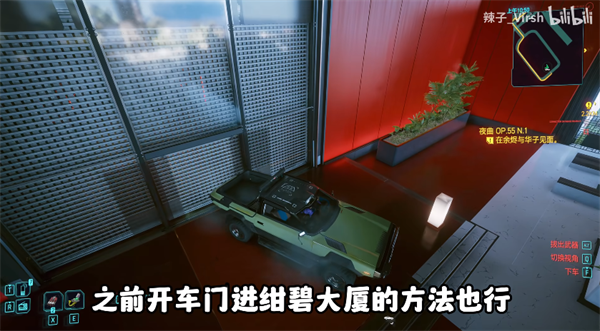 7、然后调整车辆姿态,用屁股正对或者斜对大门,之前开车门进干壁大厦的方法也行,但是需要看运气概率较低,而利用后备箱进门的原理如上;