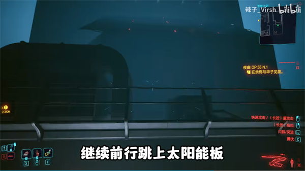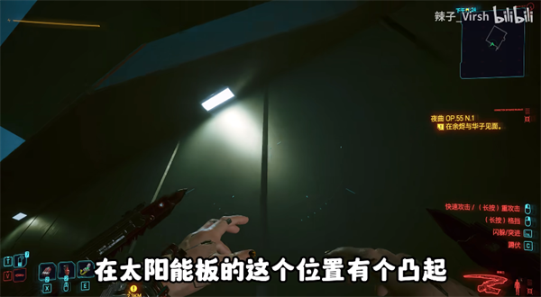 12、在太阳能板的这个位置有个凸起,我们二段跳就可以上去了;