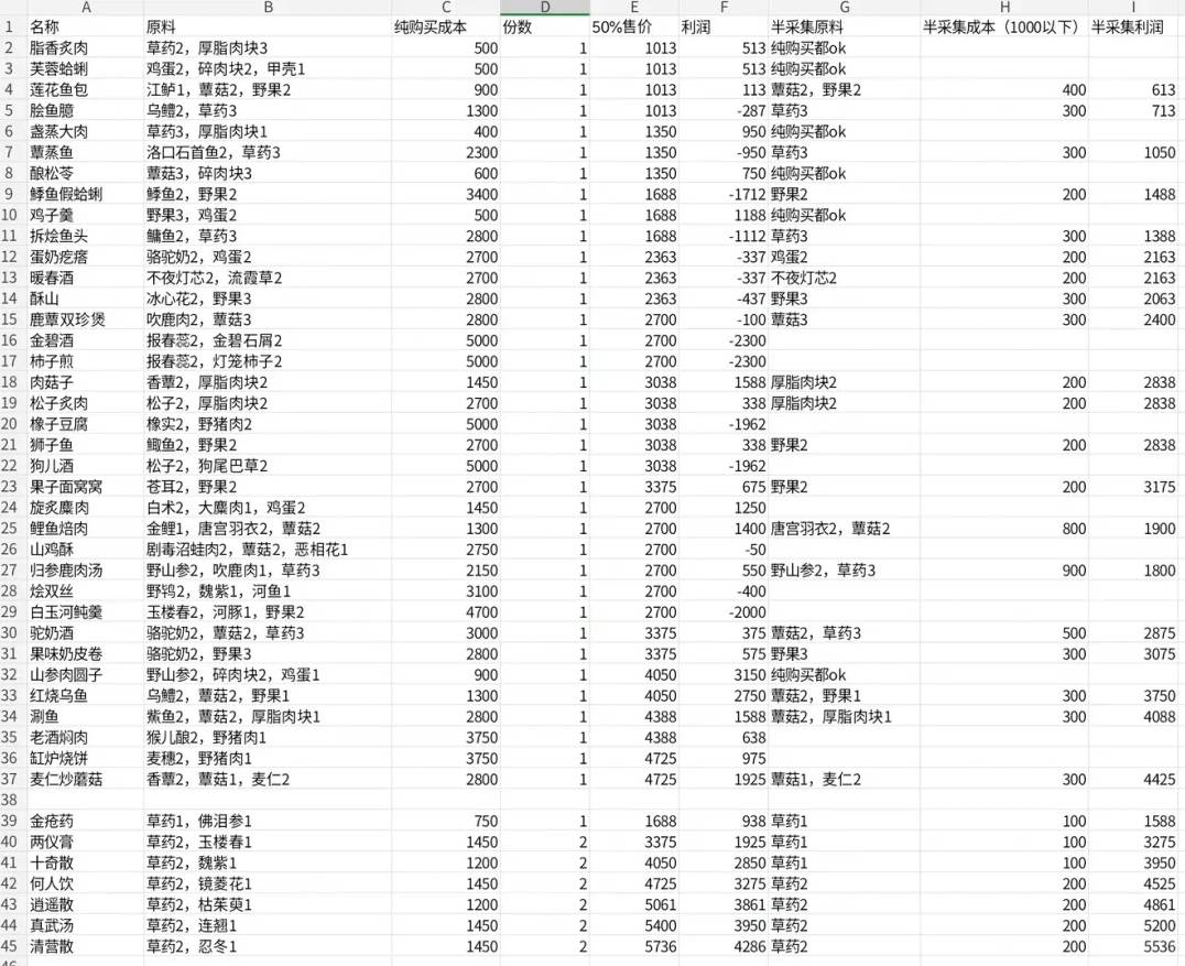 野山参,唐宫羽衣,白术价格根据倒悬壶价格算的。