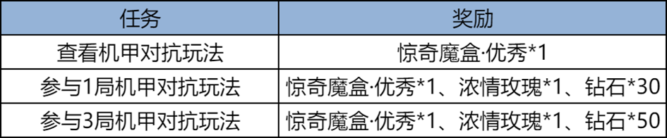 活动期间参与机甲对抗玩法领惊奇魔盒、浓情玫瑰等奖励!