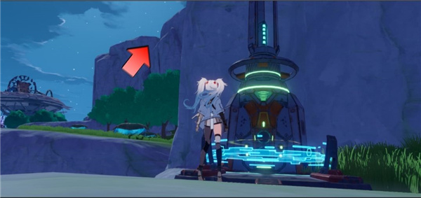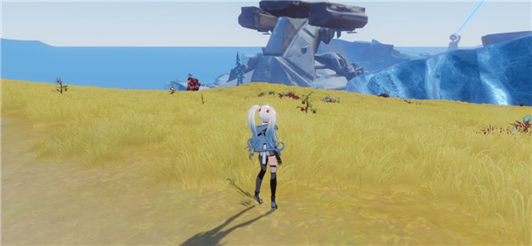 14、启动原能塔-纳维亚,使用喷气背包飞到原能塔后面,可以看到有一座较为平整的山崖,飞过去,爬到山崖上面;