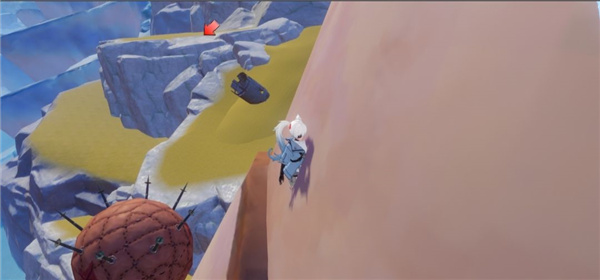9、使用源器,将原能手炮炮弹打到脚下,生成原能柱,踩在原能柱上面,使用喷气背包飞起来,然后爬到山上,一直爬就上去了;