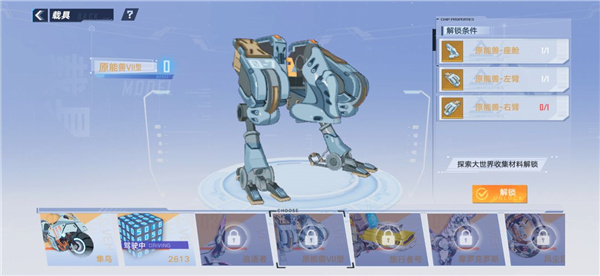 18、同样的,集齐原能兽的三个零件后,选中原能兽Ⅶ型解锁,即可获得原能兽大世界刷载具-零件。