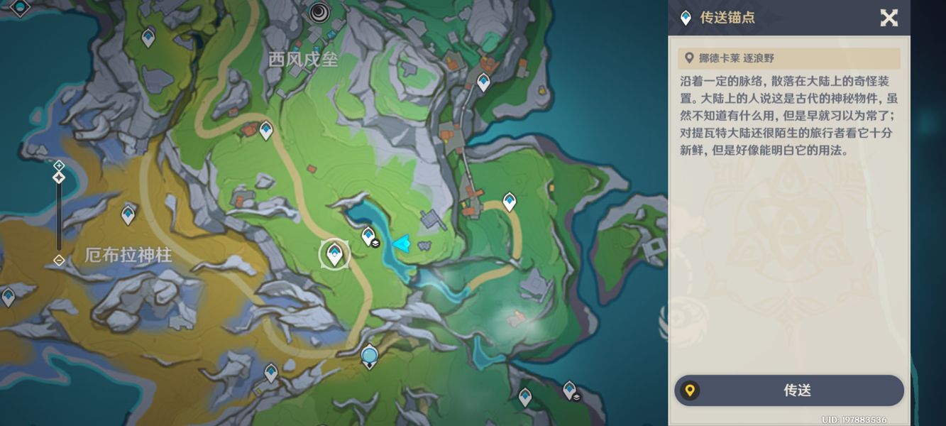 1.我们前往逐浪野七天神像北侧传送点,朝地图东方向前进。
