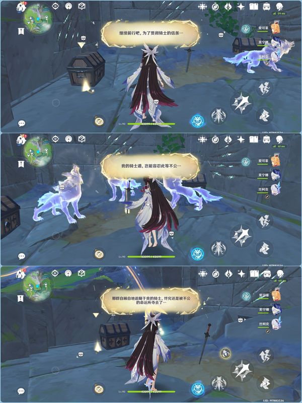 2.帮助与魔物战斗的孤狼之魂击退所有魔物,获得精致宝箱*1,并与之触摸交互。