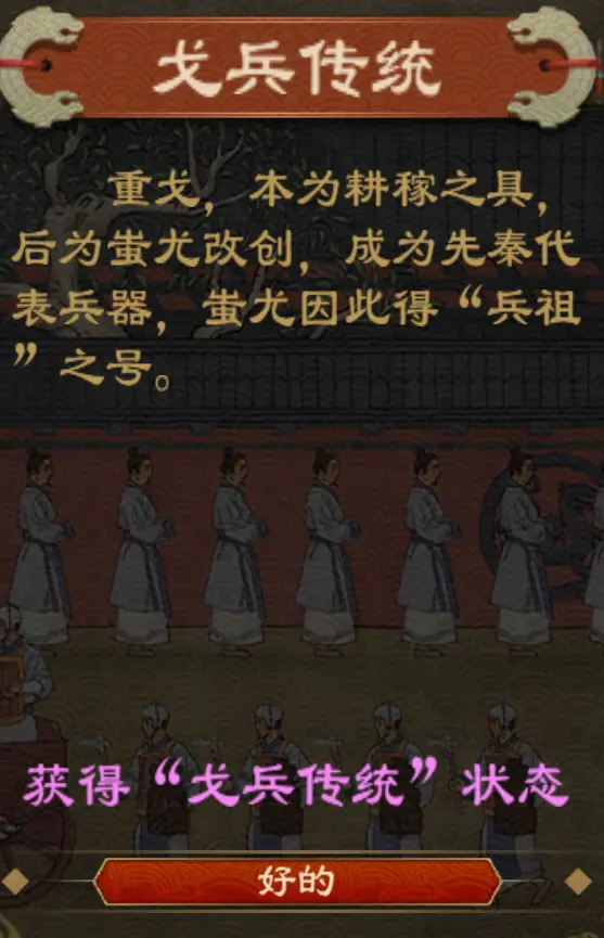 当完成青铜时代的"青铜锻造"技术后,会获得"戈兵传统"状态,并解锁配置戈兵兵种。