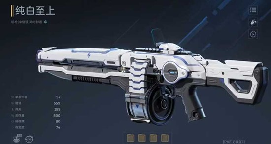 另一把值得新手关注的主武器是纯白至上。它的基础属性面板比雷霆999更为优秀,尽管换弹时间稍长,但可以通过插件进行弥补。它的主动技能“磐石身躯”开启后能生成一个力场,为玩家减少28%的所受伤害,同时持续射击每0.25秒可叠加8%的伤害提升,最高可叠加至96%,增伤效果极其显著。被动技能“强力冲击”则能在射击过程中逐步提升射速,最高提升可达100%,进一步放大了它的输出能力,使其成为清怪与对抗精英敌人的利器。