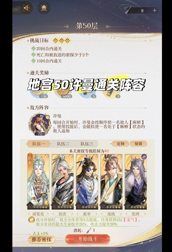 如鸢傅融乌云白云地宫攻略 地宫50通关阵容参考