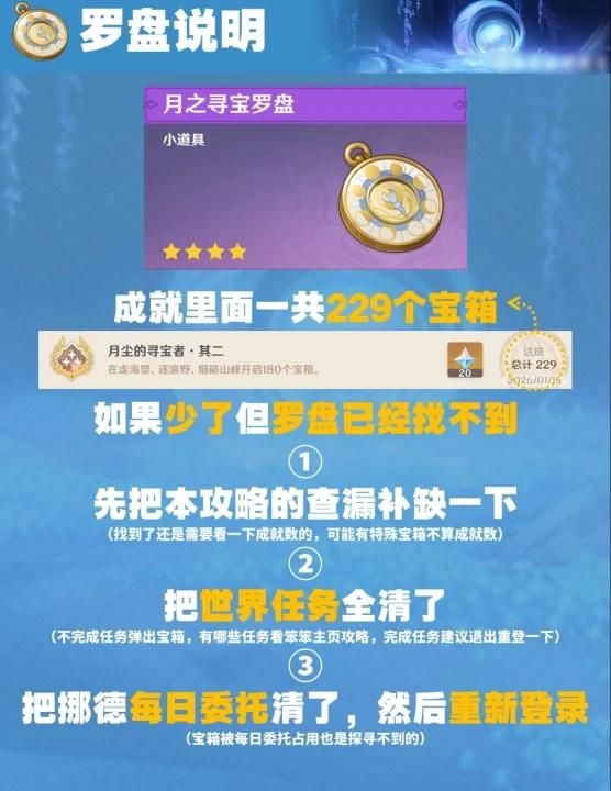 原神6.3新图229个宝箱,少了宝箱看这里,今天给大家带来的是6.3的宝箱。整理了所有罗盘探查不到的宝箱,已经100%探索的旅行者也可以查漏补缺噢~成就里面一共229个宝箱,少了可以看这篇,正在探索的也可以关注一下这些宝箱!