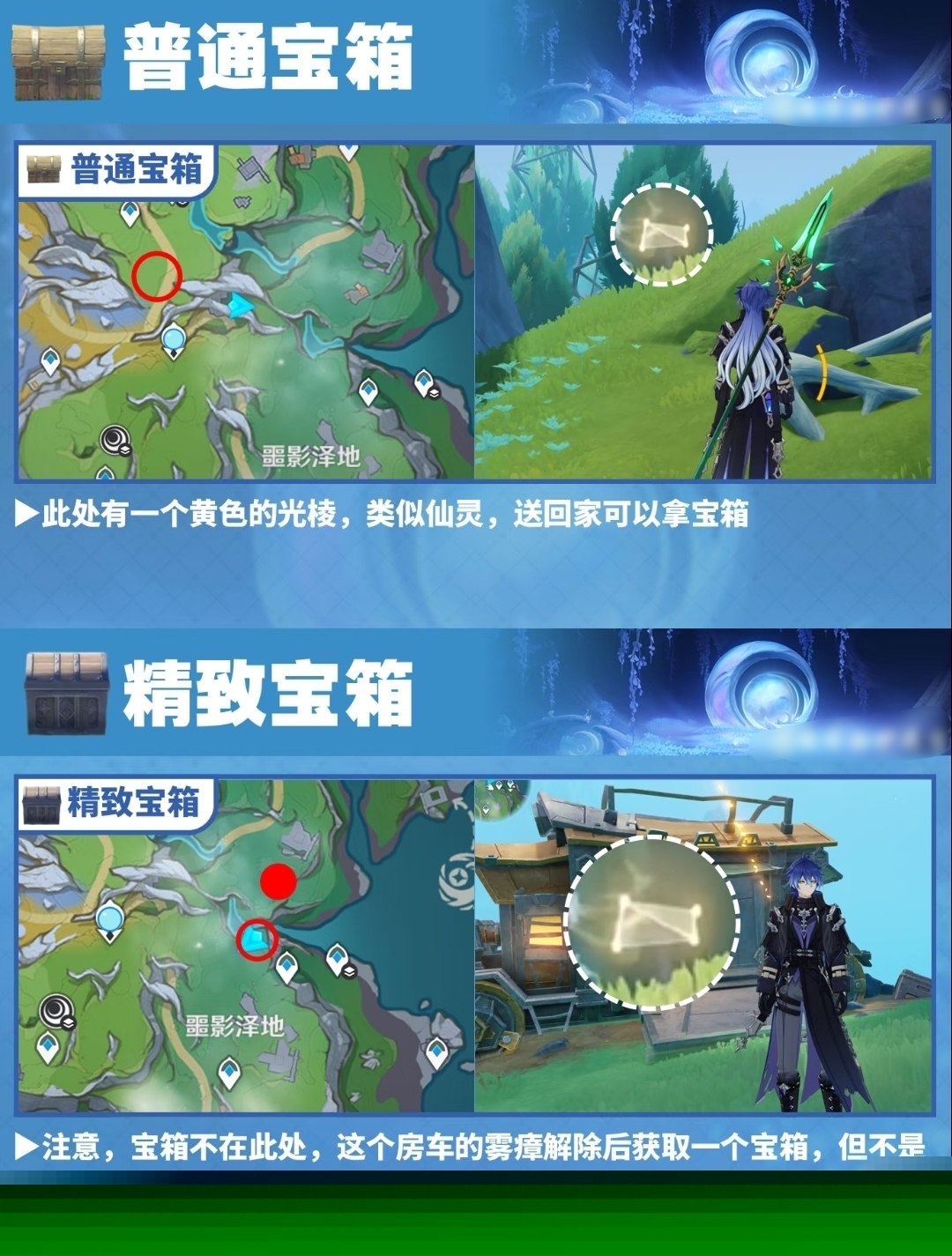 普通宝箱:图片地图里此处有个黄色的光棱,类似仙灵,送回家可拿宝箱。