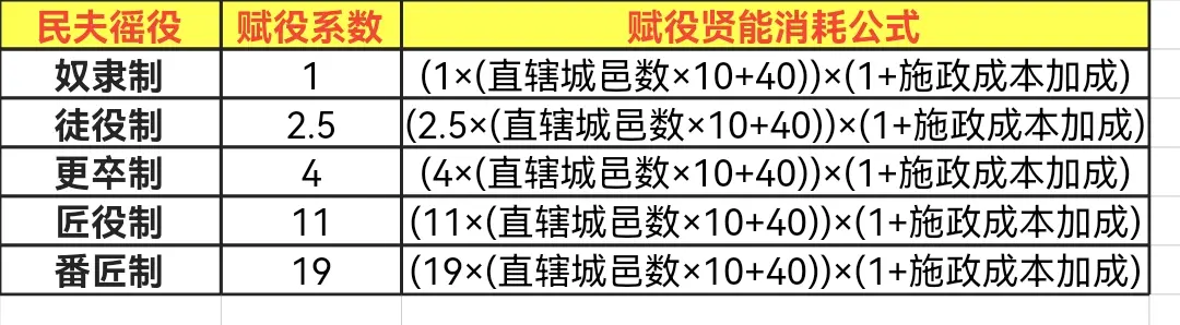 因此,其他赋役贤能消耗公式如下面四图所示: