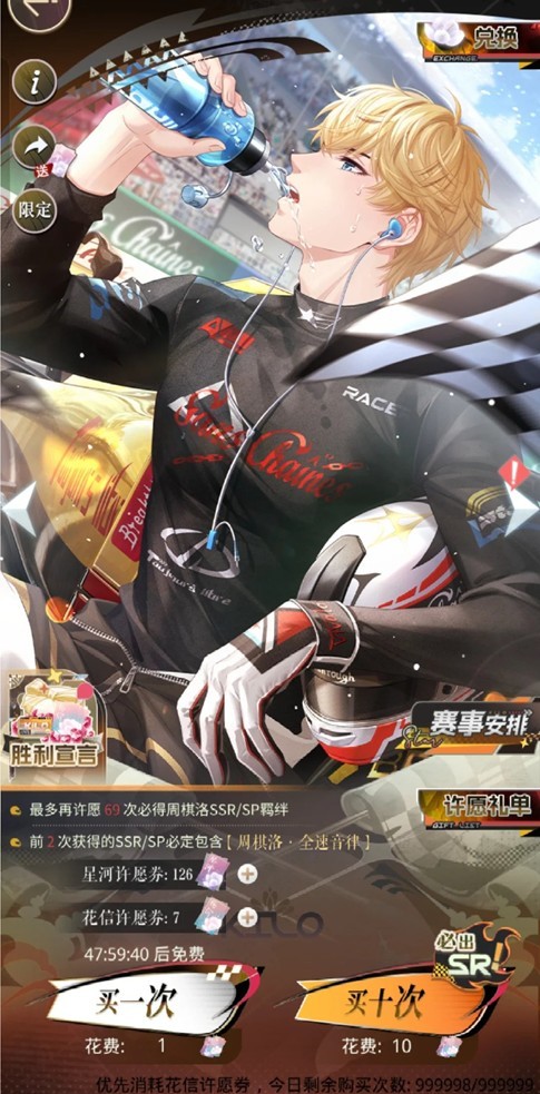 恋与制作人周棋洛新卡多少抽能拿到 赛车主题单人池攻略
