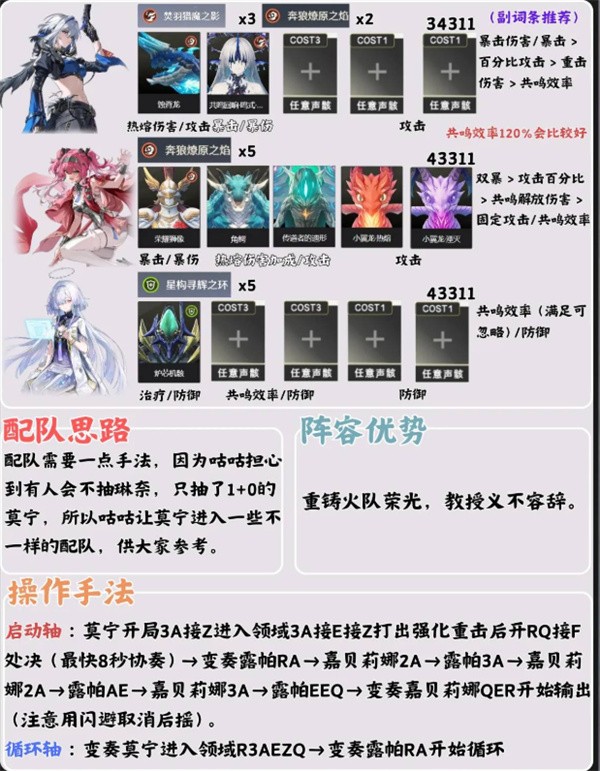 这只队伍强调新机制偏谐机制与共鸣解放输出,莫宁和琳奈都是偏谐机制中最强的2号位与3号位。