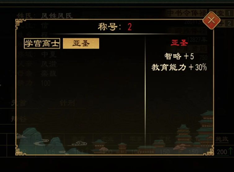 5.这些设置完之后这些设置完之后,每隔几年,他都会给你弹出几个事件,全部都选利诱,成功率高,当周游列国完之后,s长便能得到亚圣头衔